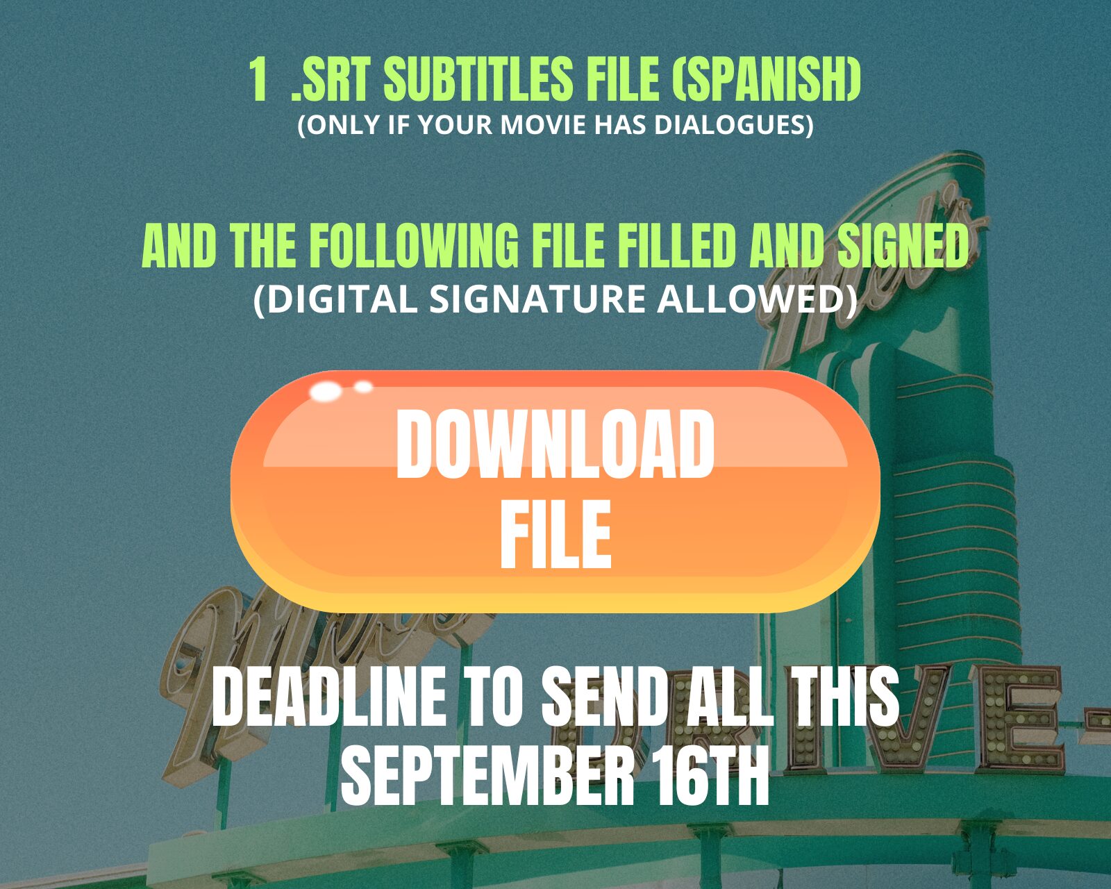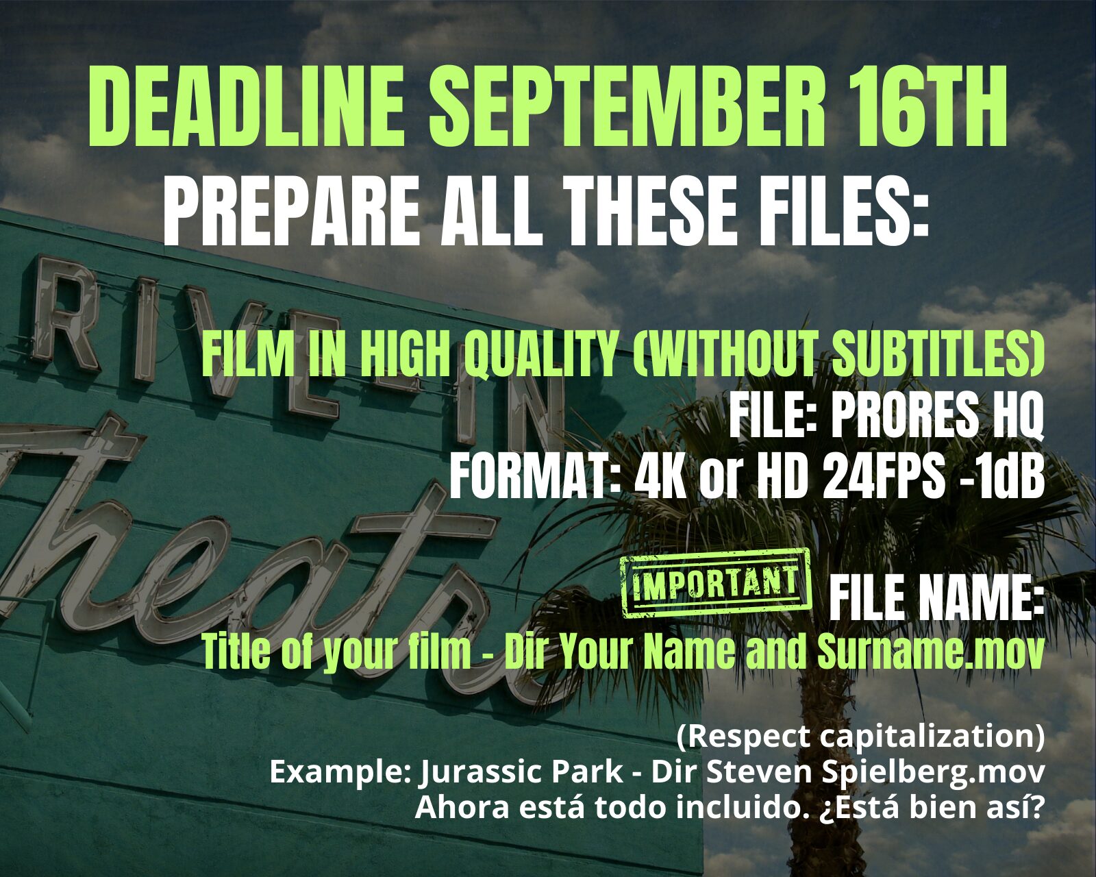 If you are here, it means that your movie was selected for the 7SIFF 2025. Now pay attention for the next steps.